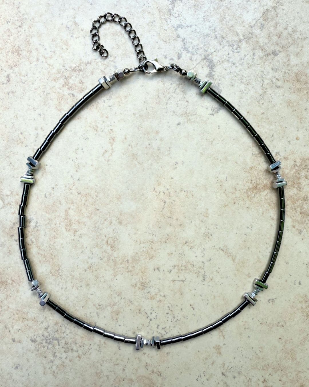 Sharp. Defiant. Unforgiving. The Barbed Necklace takes the industrial spirit of barbed wire and translates it into smooth hematite beads. A paradox of edge and elegance grounded in energy and fierce in design. It’s the piece you wear when softness isn’t the message. This necklace makes your armor visible.