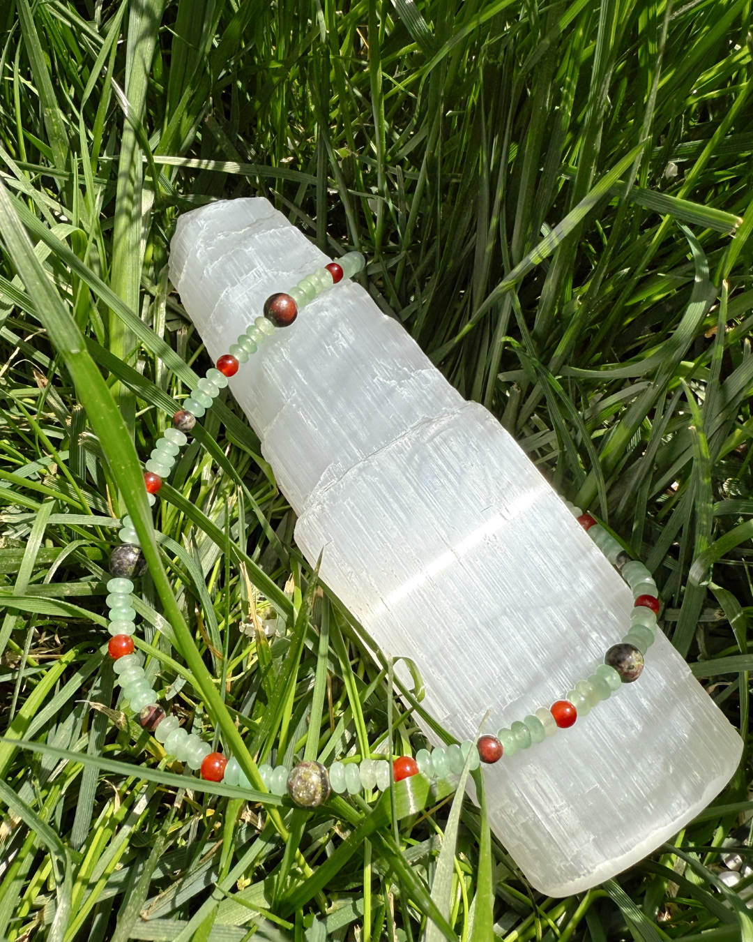 • Green Aventurine: Soft renewal with steady momentum. Green Aventurine supports heart-centered growth and encourages resilience through change. It helps you trust your instincts, follow what lights you up, and move forward without force.