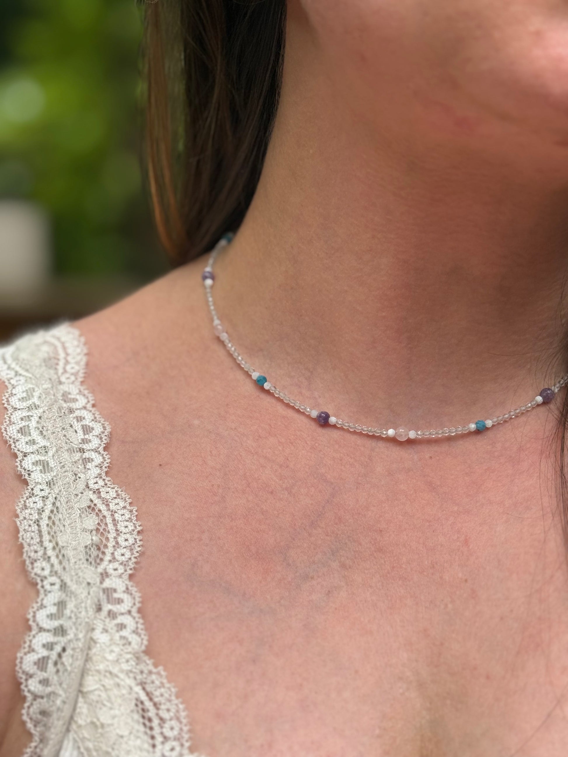 Avoid water, chemicals, and pressure. Store in a dry place. If your necklace becomes dirty, gently wipe with a soft, dry cloth. Cleanse with moonlight, sound, or intention — skip saltwater. Treat it like the ritual it is.
