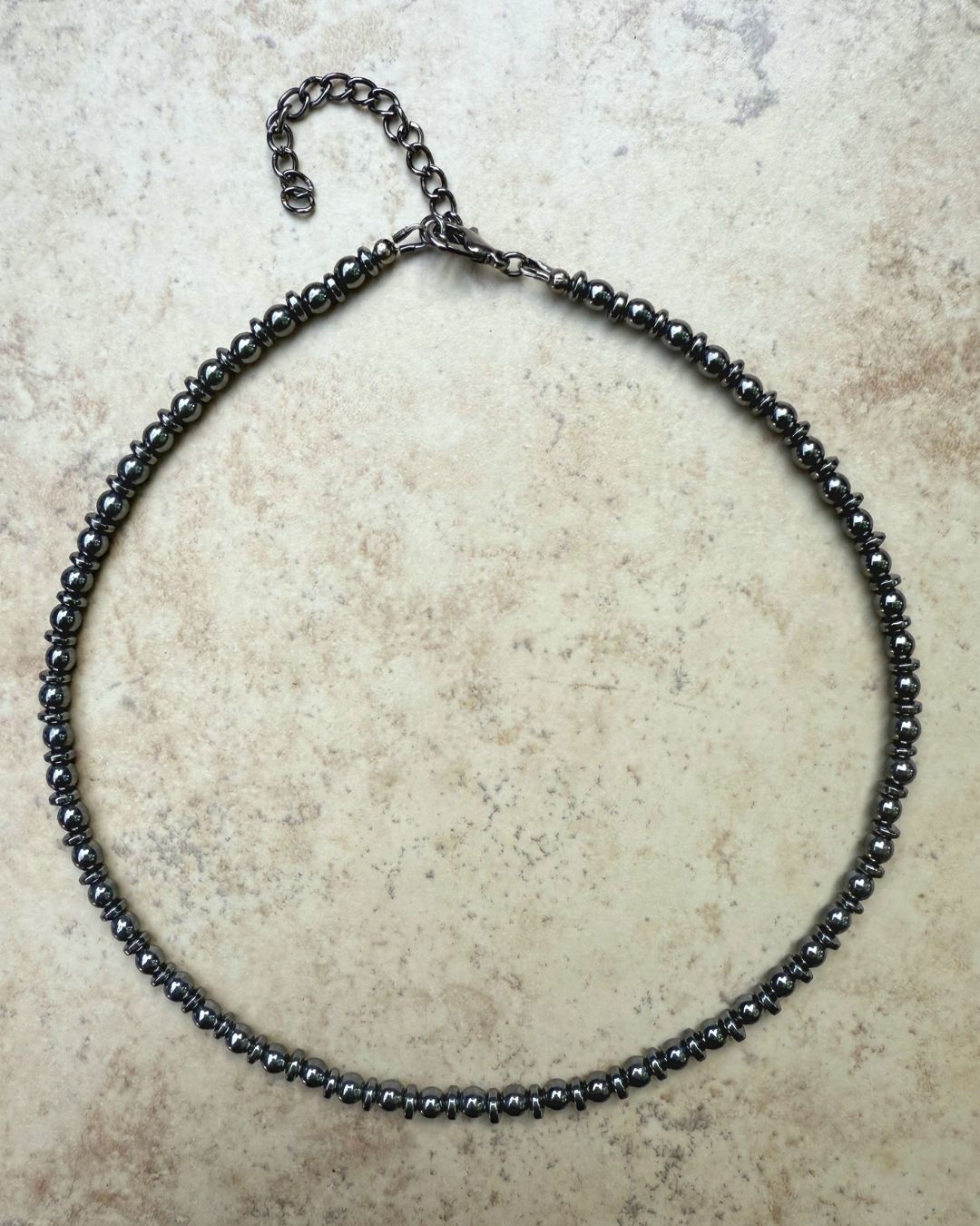 Strong. Structured. Unshakable. The Hemaspine Necklace mirrors the backbone itself as each hematite bead is stacked like vertebrae, forming a chain of resilience. Heavy in weight and grounding in energy, this piece is built to steady you when you need to stand taller, walk sharper, and move with unbreakable confidence.