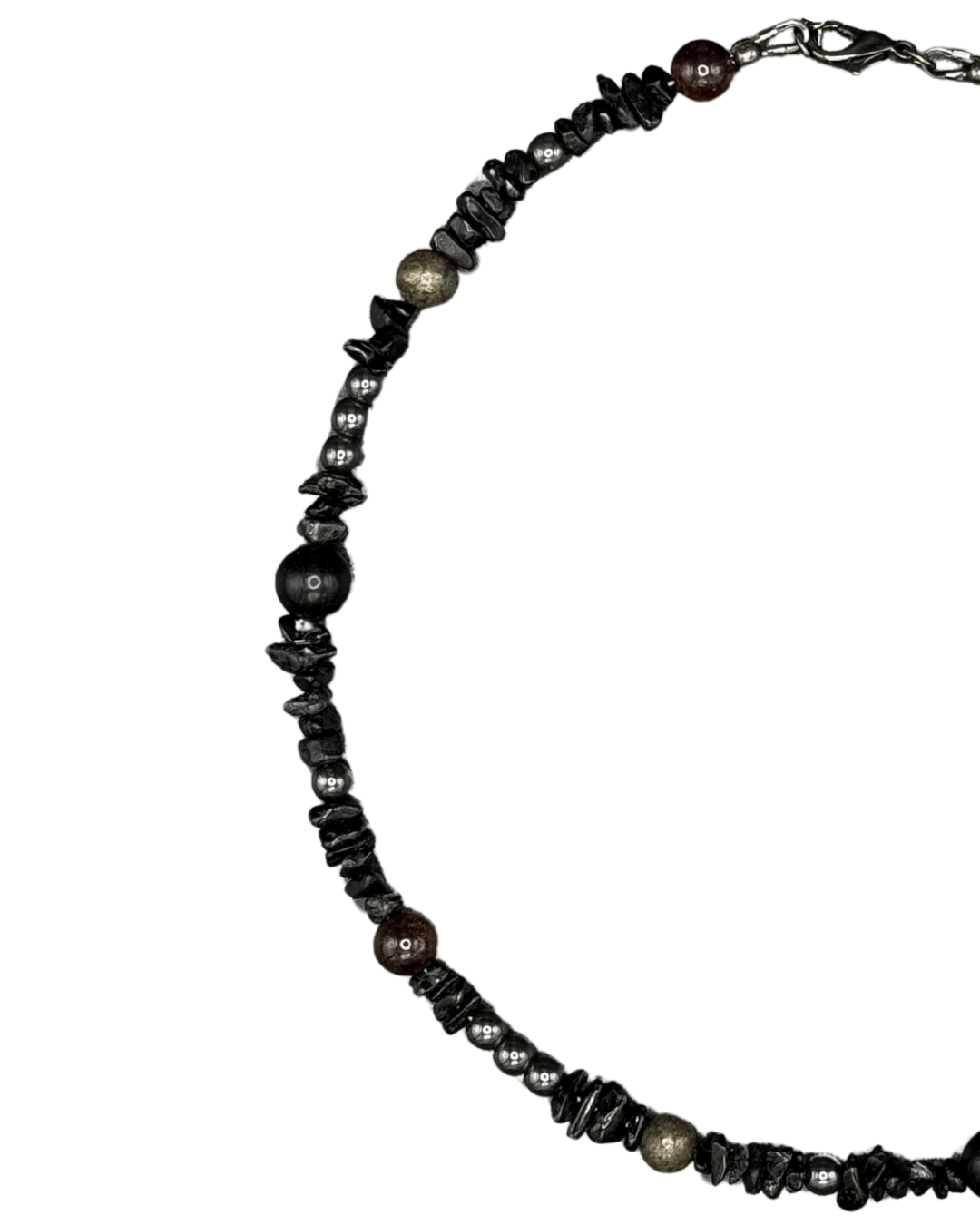 • Hematite: Dense and unshakable, Hematite grounds your energy and sharpens your mind. It’s the clean weight that locks you into your body and keeps you steady when everything else is moving too fast.