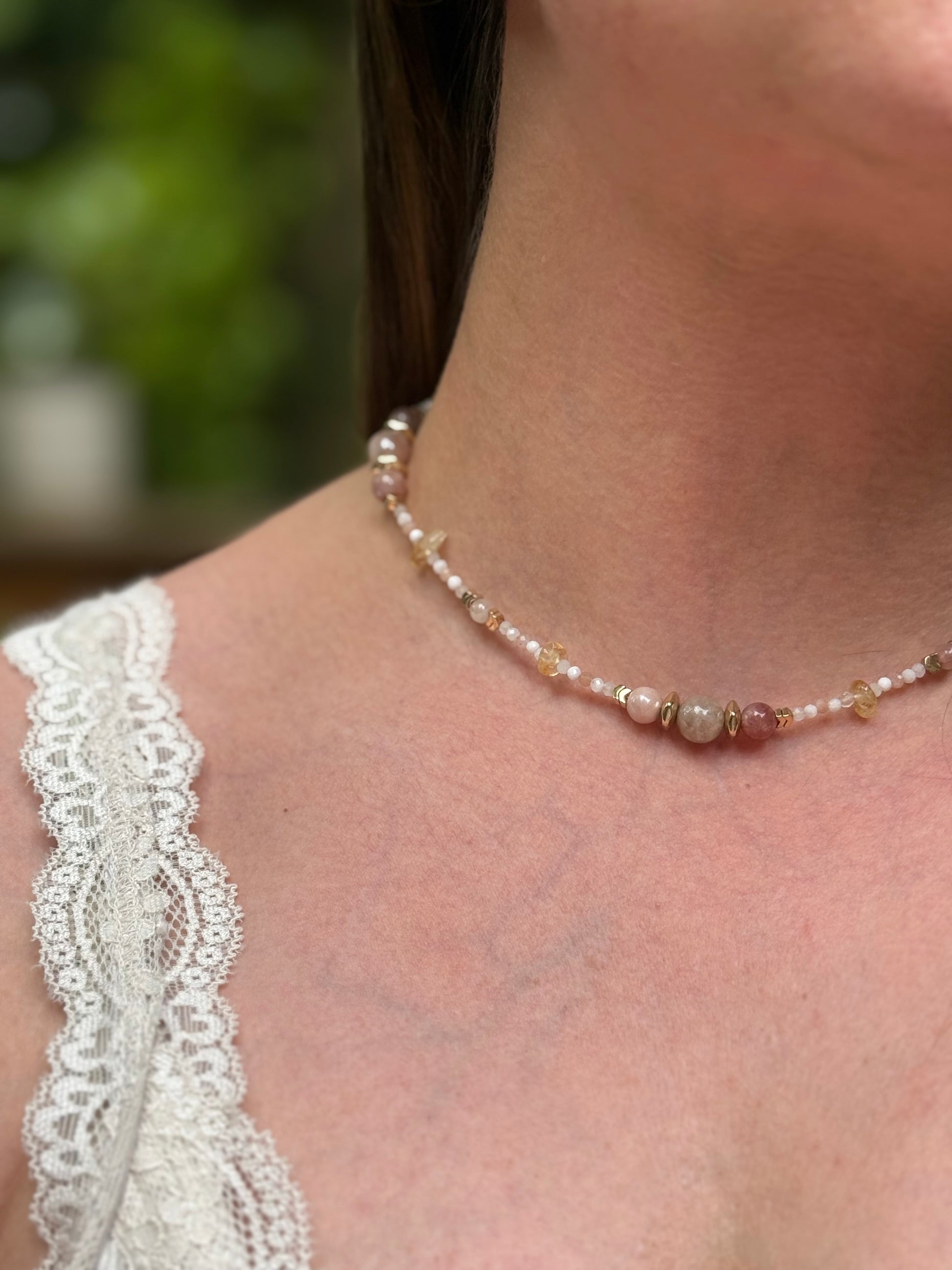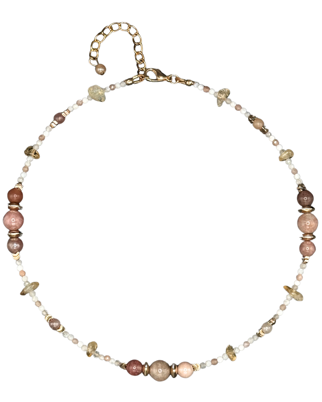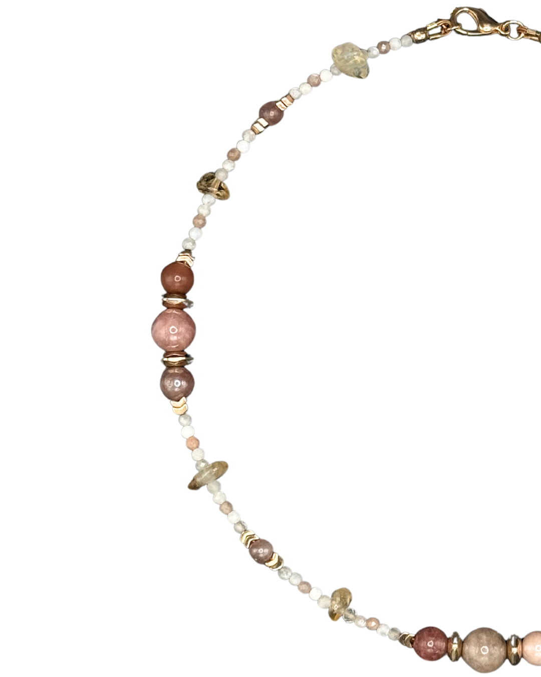 • Moonstone: Softens the heart and enhances intuitive flow. Its energy invites reflection, emotional depth, and a calm connection to your inner rhythm.