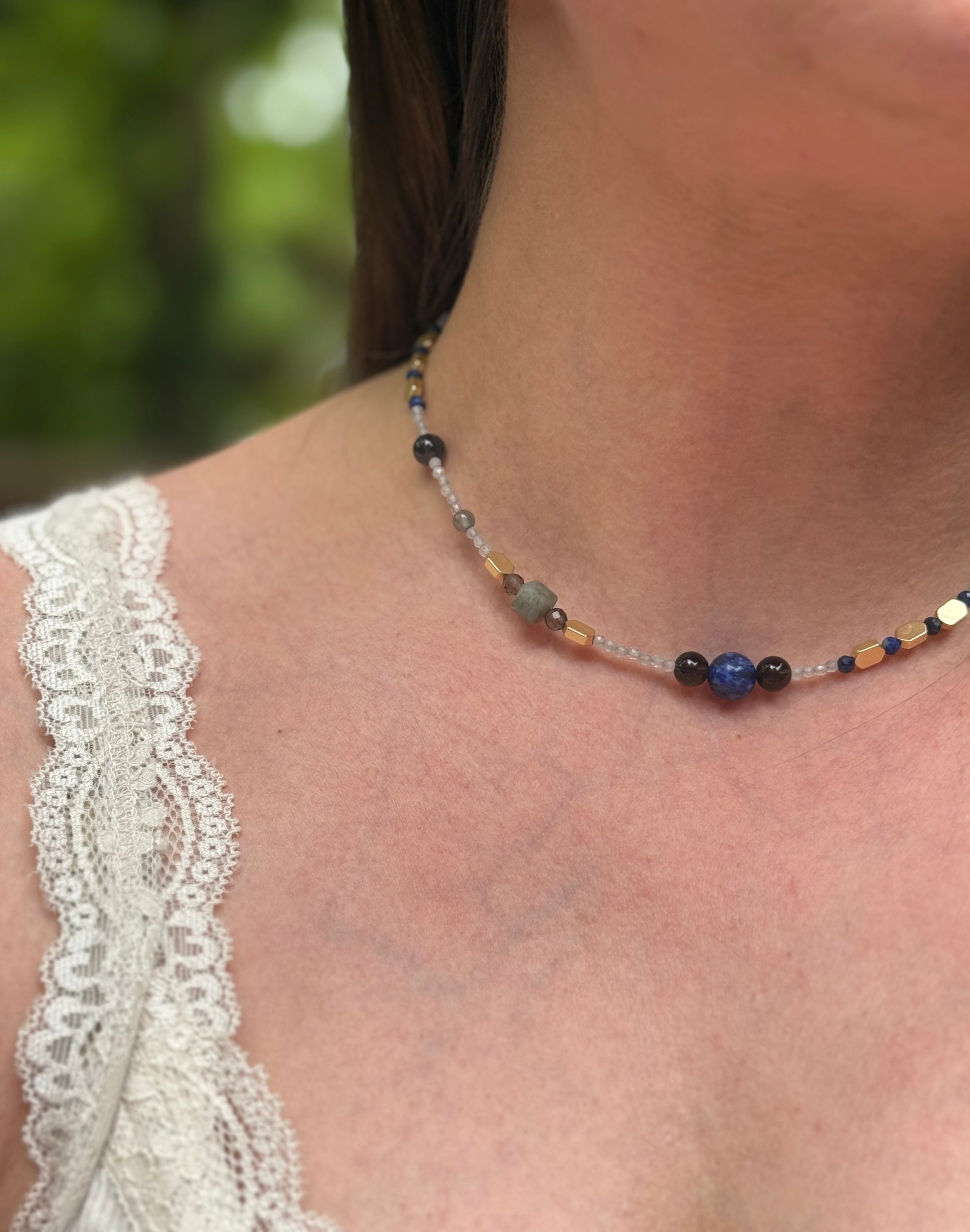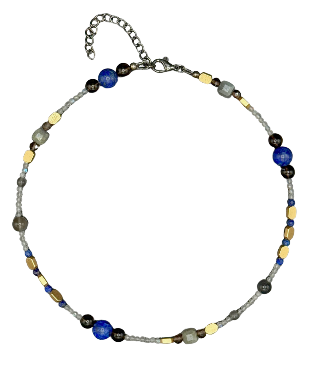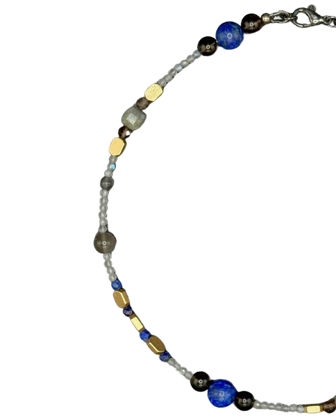 • Lapis Lazuli: Raw truth. Lapis opens the throat and the inner vision. It gives voice to what’s been unspoken and brings wisdom to the surface. Wearing it feels like knowing exactly what needs to be said, and saying it without fear.